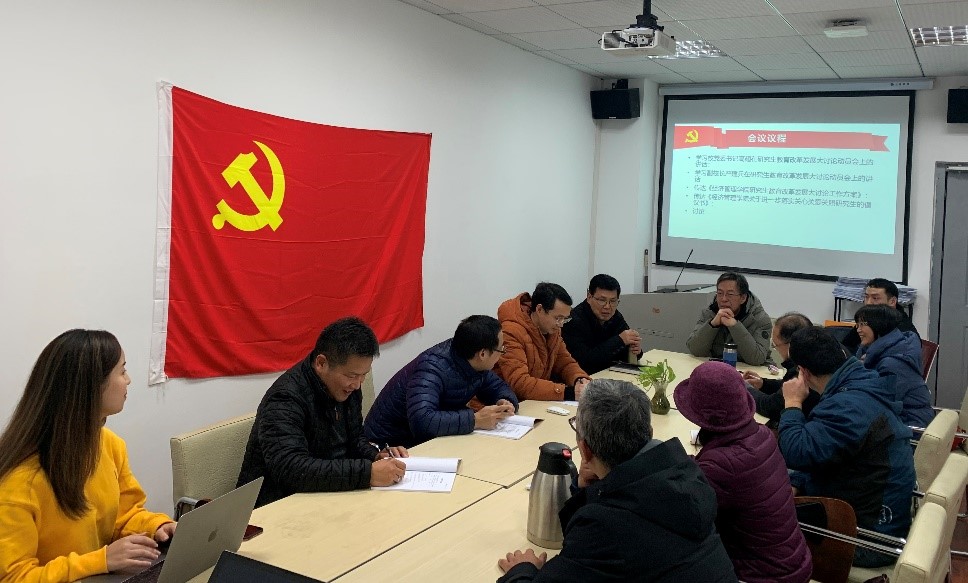 1224日周四下午4点,市场营销系和系党支部联合组织研究生导师围绕“研究生教育思想讨论”开展专题理论学习活动;学院分管研究生工作的孙剑副院长莅临指导。