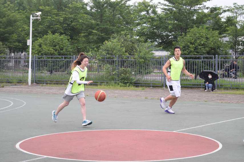 随后进行正式篮球赛。第一节比赛中,腊肉队以出色的配合取得领先优势。第二节比赛开始,鲜肉队顶住压力,逐步缩小比分差距并实现反超。在第三节比赛中,雨点最终还是落了下来,但双方都坚持打完比赛,比分牌快速翻动。最后一节比赛,比分咬紧,战况激烈,鲜肉队沉稳输出,最后以68:56的比分取得了比赛胜利。