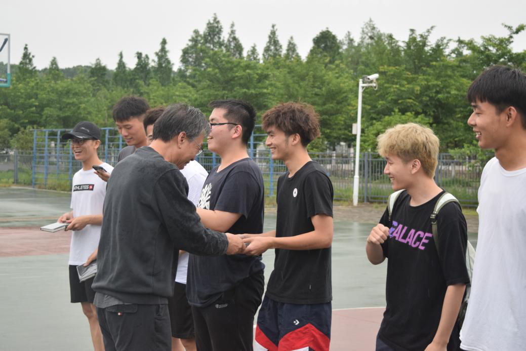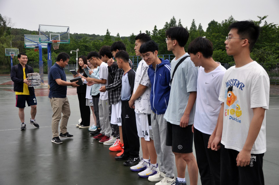 在篮球赛结束之后,由高韧老师、系主任包玉泽老师及系支部书记李春成老师为参加本次活动的教师及各年级的同学们颁发印有“yl6809永利官网集团市场营销系”的笔记本作为纪念。