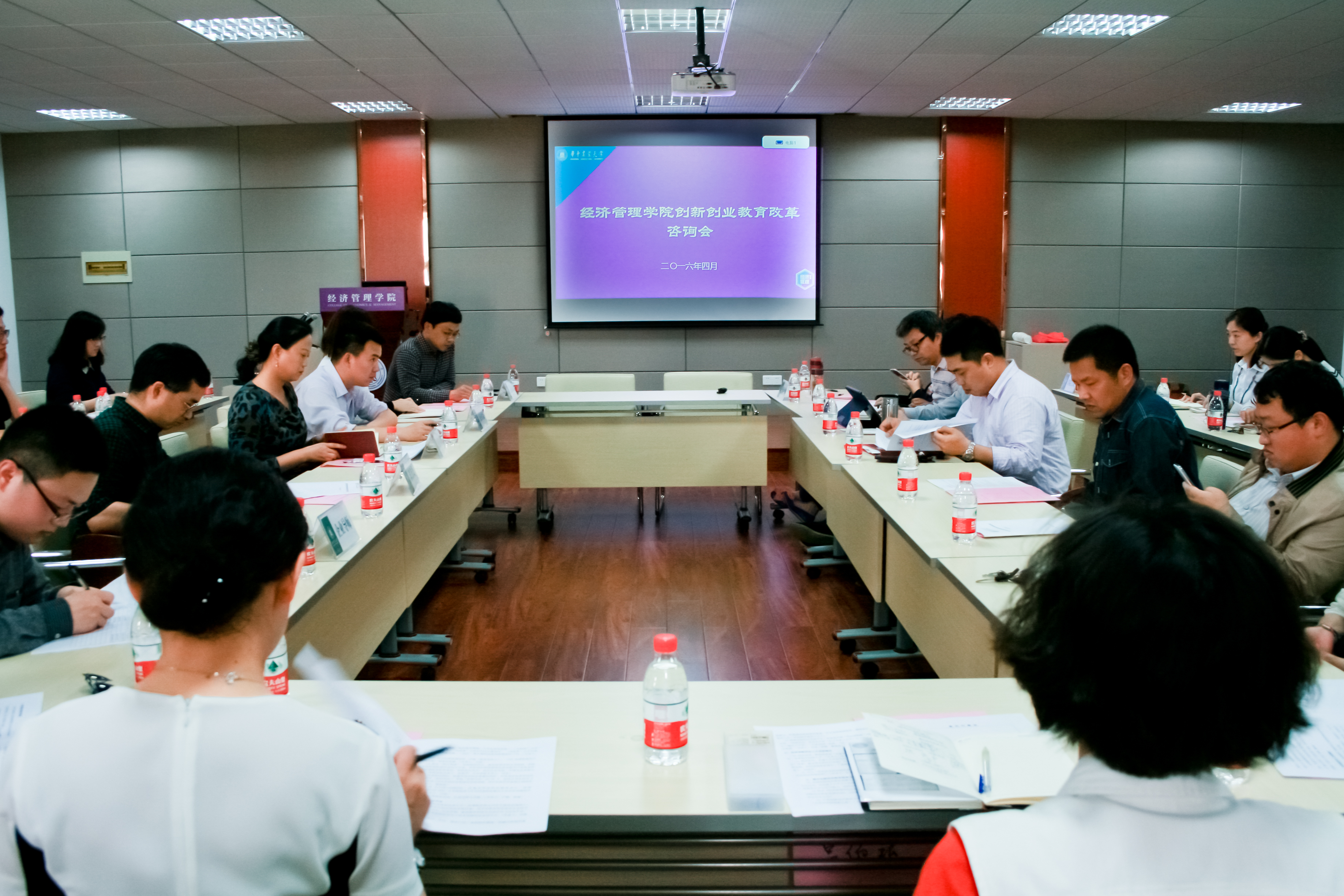 4月14日下午,yl6809永利集团于人文楼M412召开创新创业教育改革研讨会,武汉市洪山区科技局创业负责人刘瑞雪、湖北省青年创业就业联盟执行主席漆勇、湖北明桥商务秘书服务有限公司总经理范晶、武汉邹龙网络信息有限公司技术经理梁鹏斌、校教务处副处长刘震、校团委副书记刘三宝及经管学院党委书记张越、副院长申沛、创新创业指导教师代表、创新创业学生代表40余人参加了研讨。会议由yl6809永利集团党委副书记镇志勇主持。