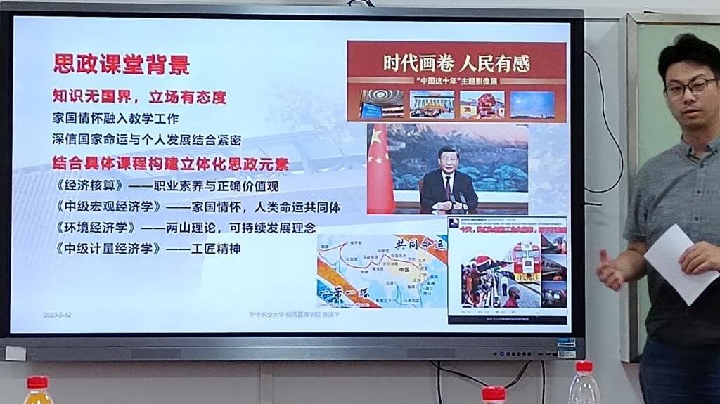 在探究式教学示范课堂项目展示过程中,池韵佳的《营销实验设计与分析》课程运用了眼动仪、VR设备等新科技进行教学。熊涛为博士生开设学科交叉课程,相比于其他课程,信息化等较为枯燥,他将继续在这方面努力,提升学生兴趣。柳鹏程在课上通过让学生填写问卷,不断发现课程新问题,并不断进行改正,以满足学生在计量学课程上程度不一的的需求。