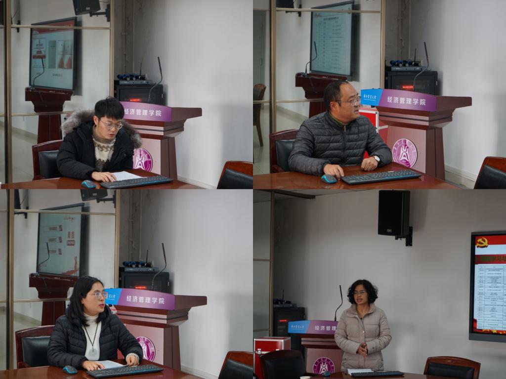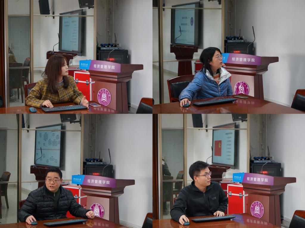 经济学教工党支部书记杨芷晴聚焦支部深入推进校级“对标争先”建设立项项目,汇报了党员教师发挥示范带动作用,以课程思政建设为主线、充分融入新媒体,提升支部组织活动时效性,形成了系统的经济类课程思政教学案例库等典型经验做法。企管教工党支部通过落实支部学习活动“四严”“四同”,以党建带动产学研,充分发挥专业优势特色,加强师生支部联动,以红色学术讲座引领学习型支部建设,发挥团队作用以老带新促成长,有条不紊推进支部工作。
